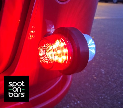 Old School, retro, Gylle style Twin LED module, Red / White with a smoked graphite lense suitable for rubber arm marker lights – click for rubber arm housings – SHORT LONG ANGLED