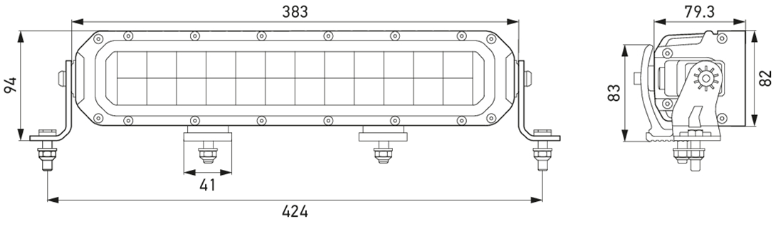 - Length: 383mm – Height: 82mm – Depth: 79.3mm – Overall Height: 94.3mm – Lamp Type: LED – Number of LEDs: 120