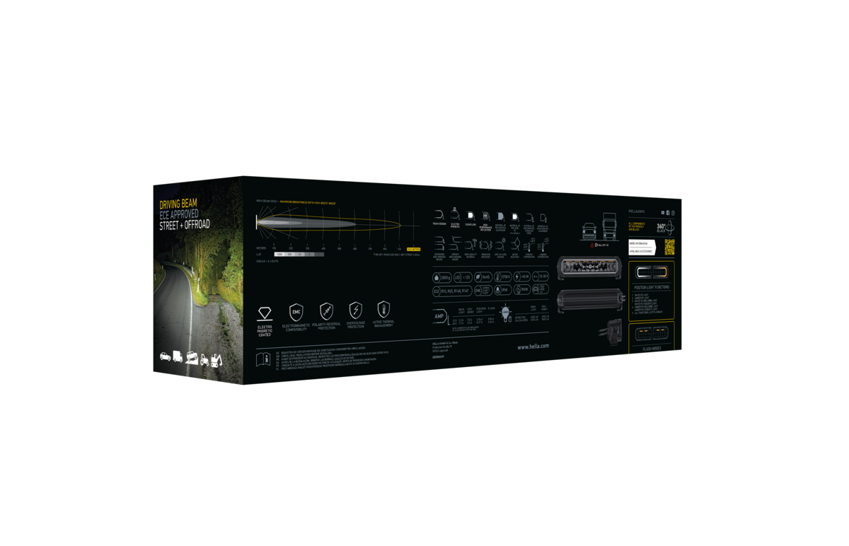 - CISPR 25 class 3 EMC rating on the built in amber warning light function. ECE R65 approval