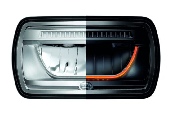 Updated spotlight from Hella with that amazing “smile” sidelight! is now available in DUAL Colour position light – selectable white or amber. – LED main beam and led position light,